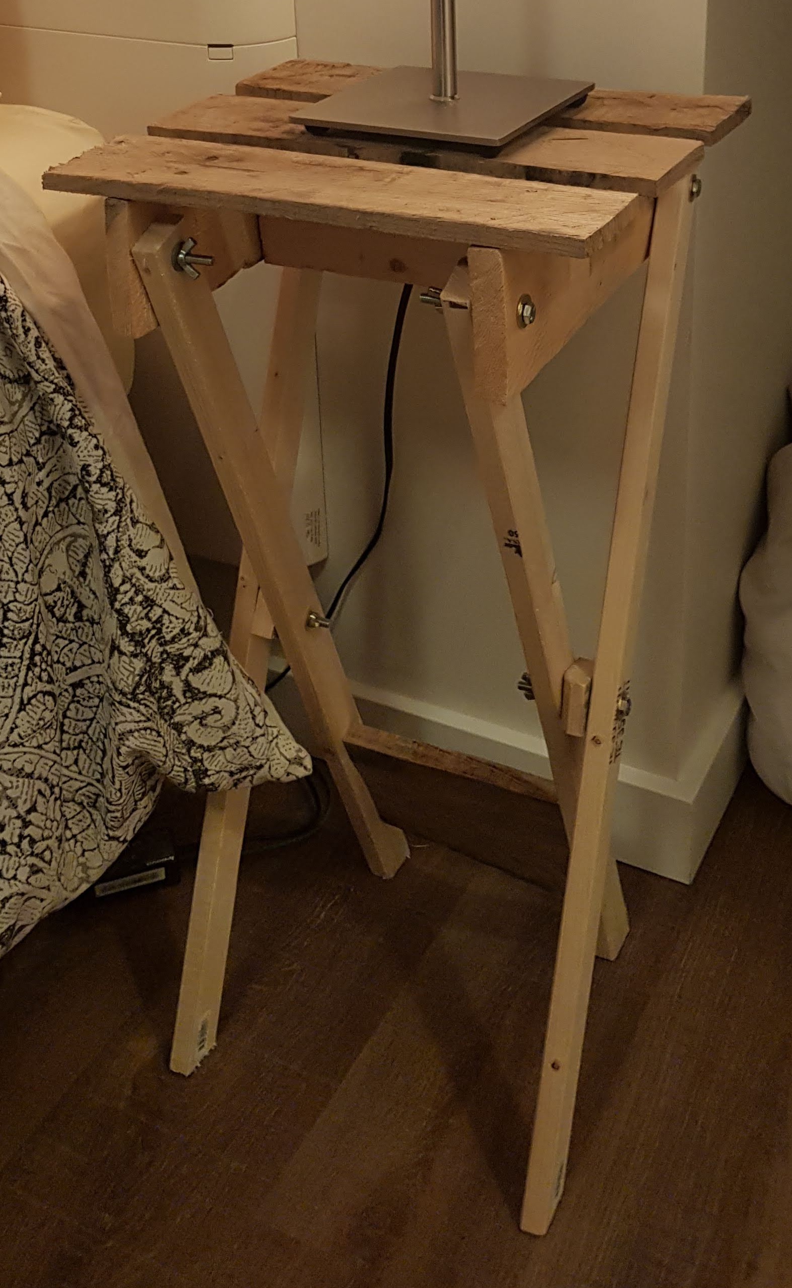 Having recently moved I needed new furniture. I gathered some scrap wood and used my limited tools and carpentry skills to furnish my room.